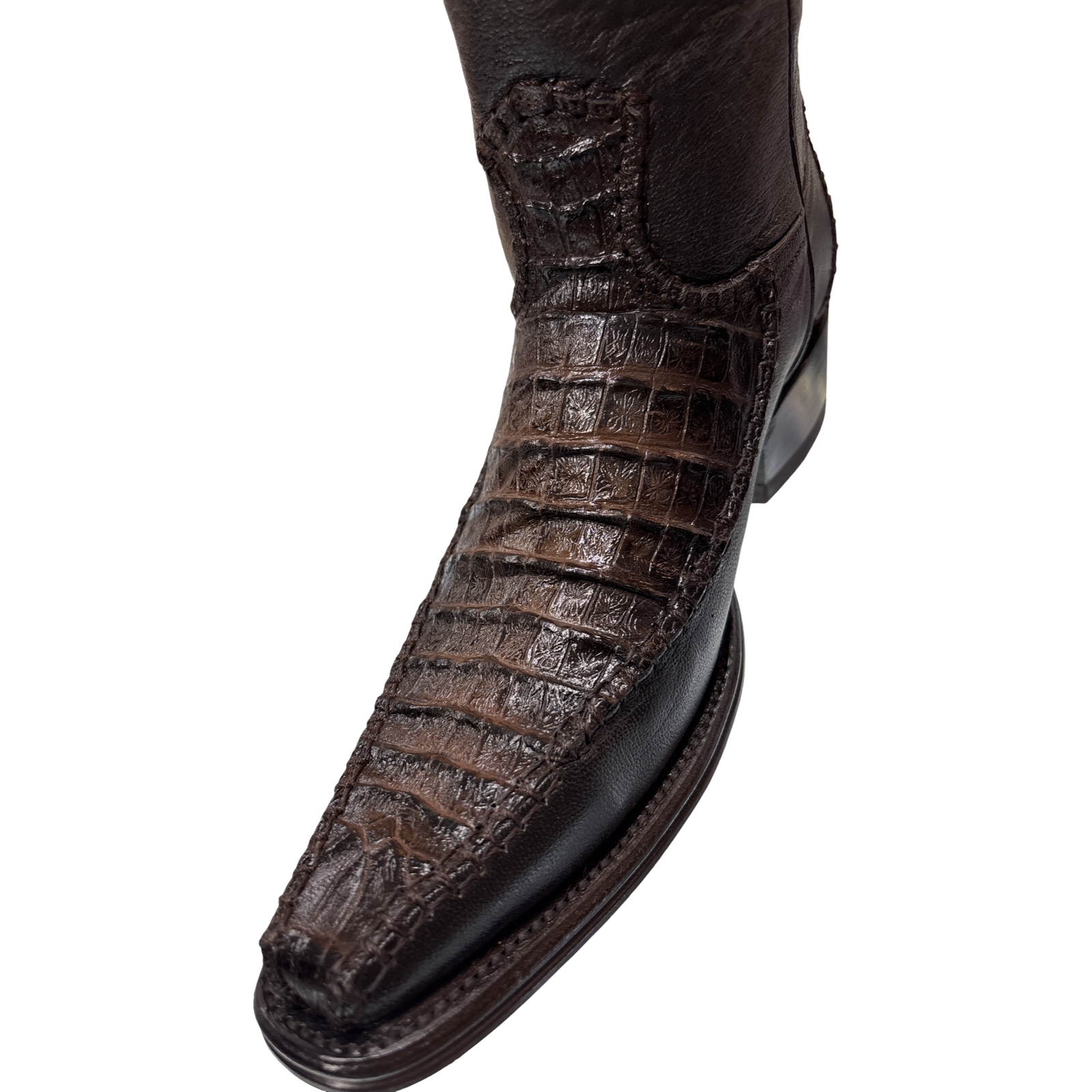 African Boots Brown Imitation Crocodile Belly Western Boots – Square Toe Cowboy Boots – Style Holanda